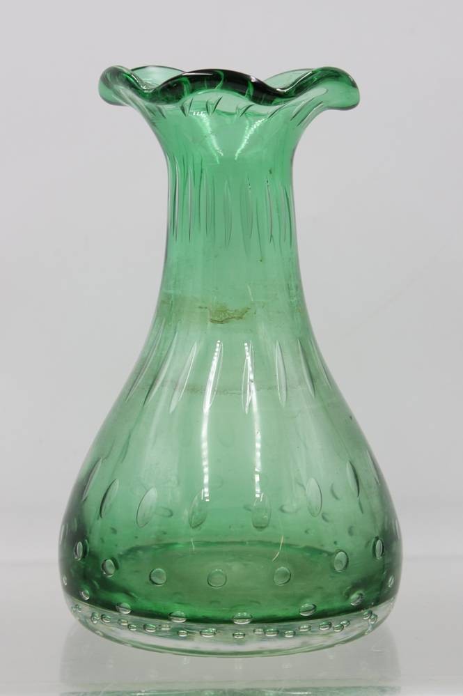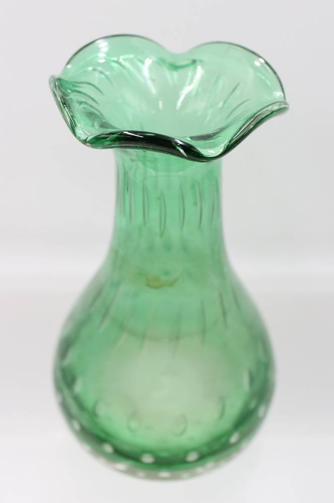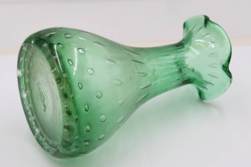 grüne Kunsglasvase, wohl Murano, Luftblasen, ca. H-21cm [1]