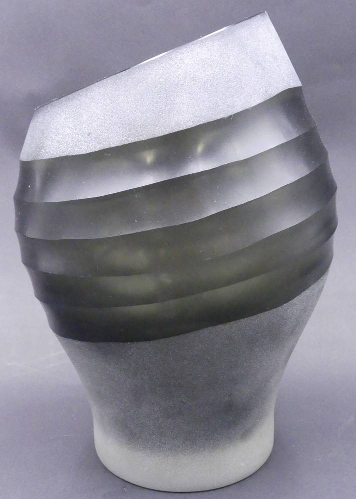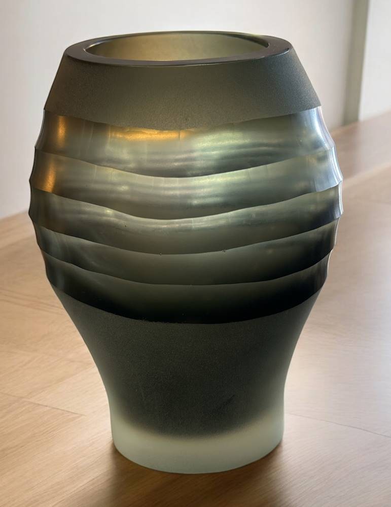 grüne Murano Vase, wohl Carlos Scarpa für Venini, H-20,5 cm, tw. mattiert [1]
