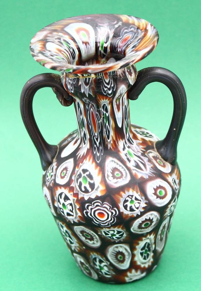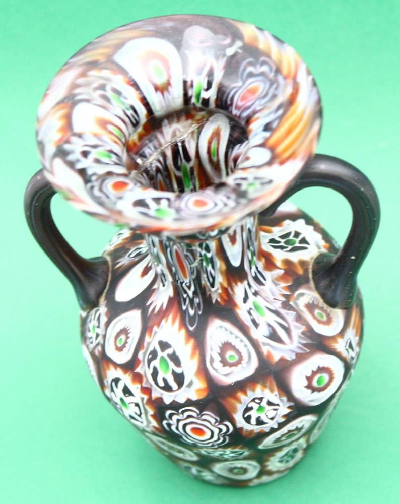 Henkel-Vase, Fratelli Toso um 1920, eingeschmolzene Murrinen, H-15 cm [1]