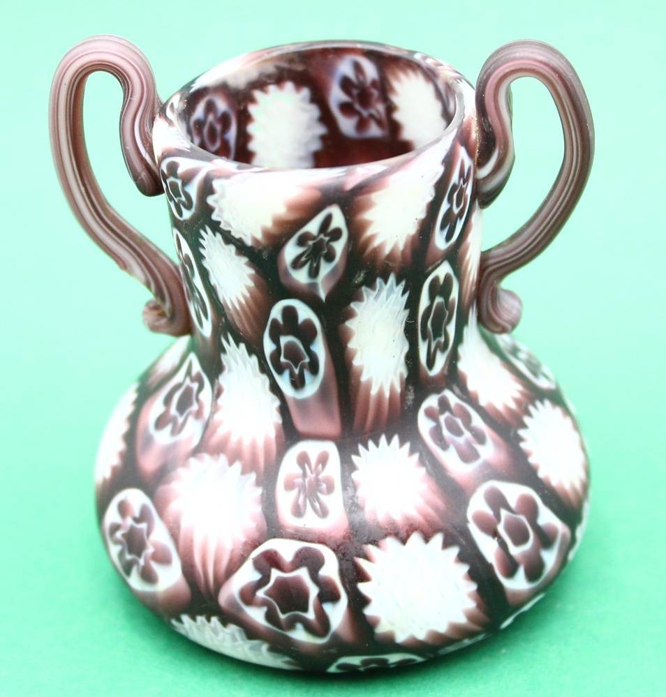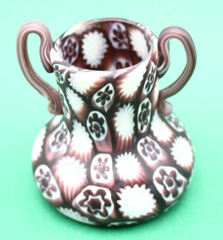 Henkel-Vase, Murano-Fratelli Toso um 1920, eingeschmolzene Murrinen, H-7,5 cm [1]