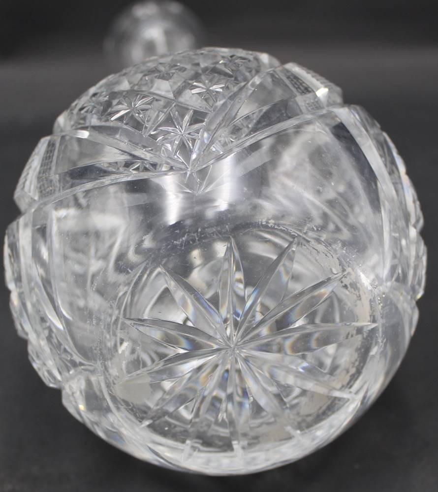 hohe Kristall-Karaffe mit Farnschliff, H-38 cm, Rand mit kl. Chips [1]