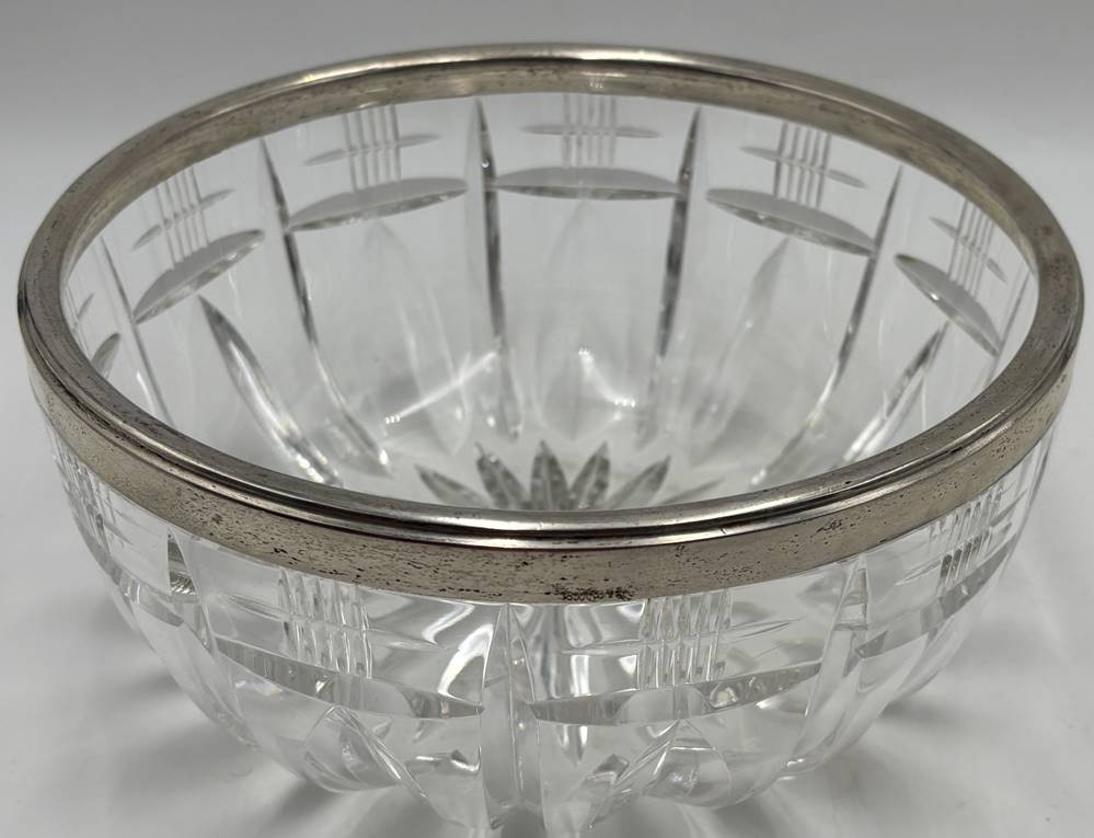 hohe Kristallschale mit Silber-800- Rand, H-10 cm, D-21 cm [1]