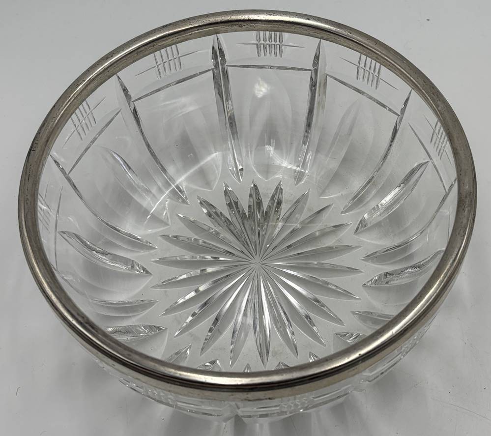 hohe Kristallschale mit Silber-800- Rand, H-10 cm, D-21 cm