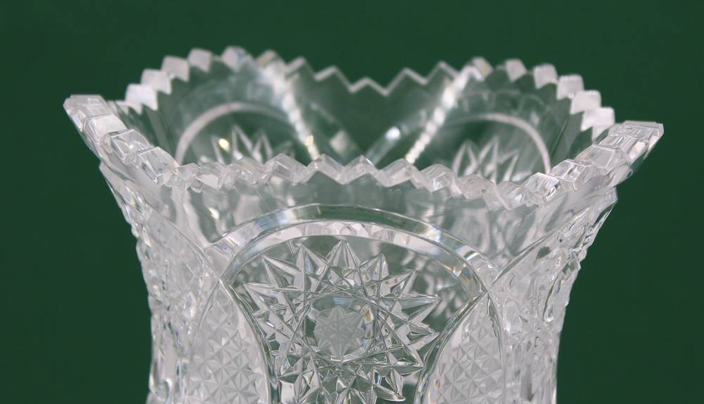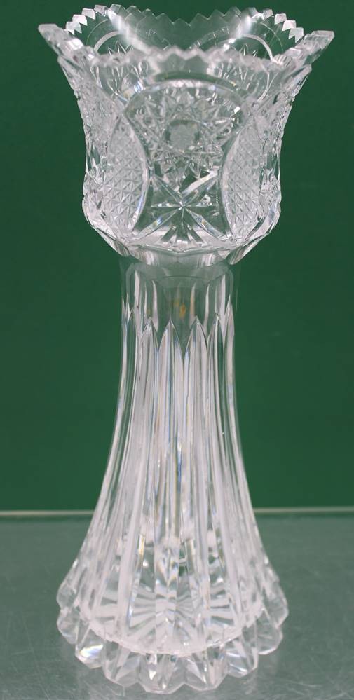 hohe Vase, beschliffen, gezackter Rand, ca. H-32cm [1]