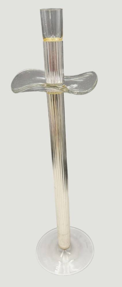 hoher Kerzenhalter "Rosenthal", versilberter Stand mit Glasmontur, signiert Michael Böhm, H-42 cm [1]