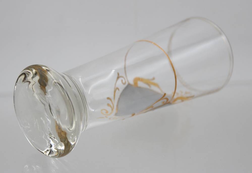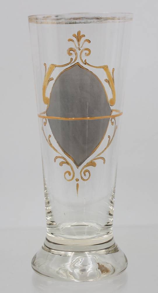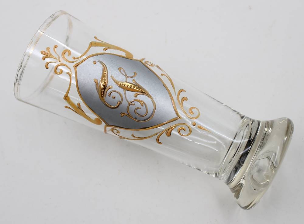 Jugendstil-Glasbecher mit Emaille-Handmalerei, berieben, ca. H-16cm [1]