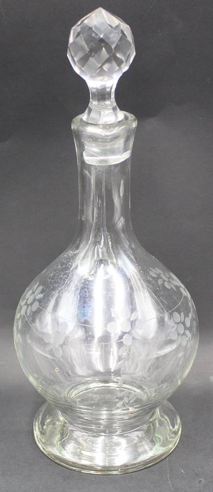 Karaffe mit Blumenschliff auf Stand, H-30 cm