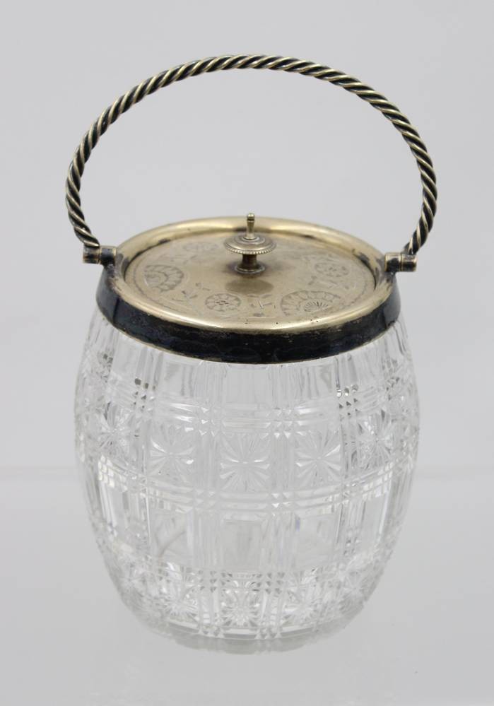 Kekseimer, älter, Kristall beschliffen, versilberte Monturen, ca. H-16cm [1]