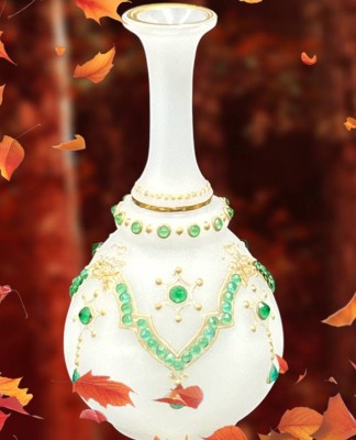 kl. Art Deko Vase, mit grünen Steinen, Goldemaille, wohl Russland, H-14 cm [1]