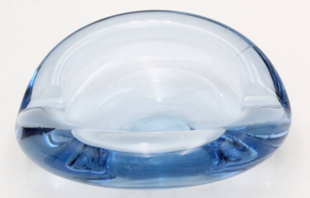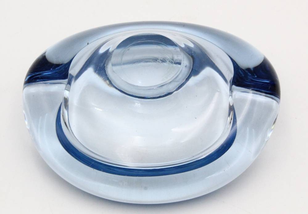 kl. hellblauer Ascher "Holmegaard" Ritzsignatur
