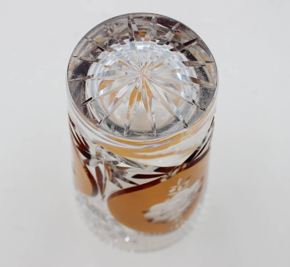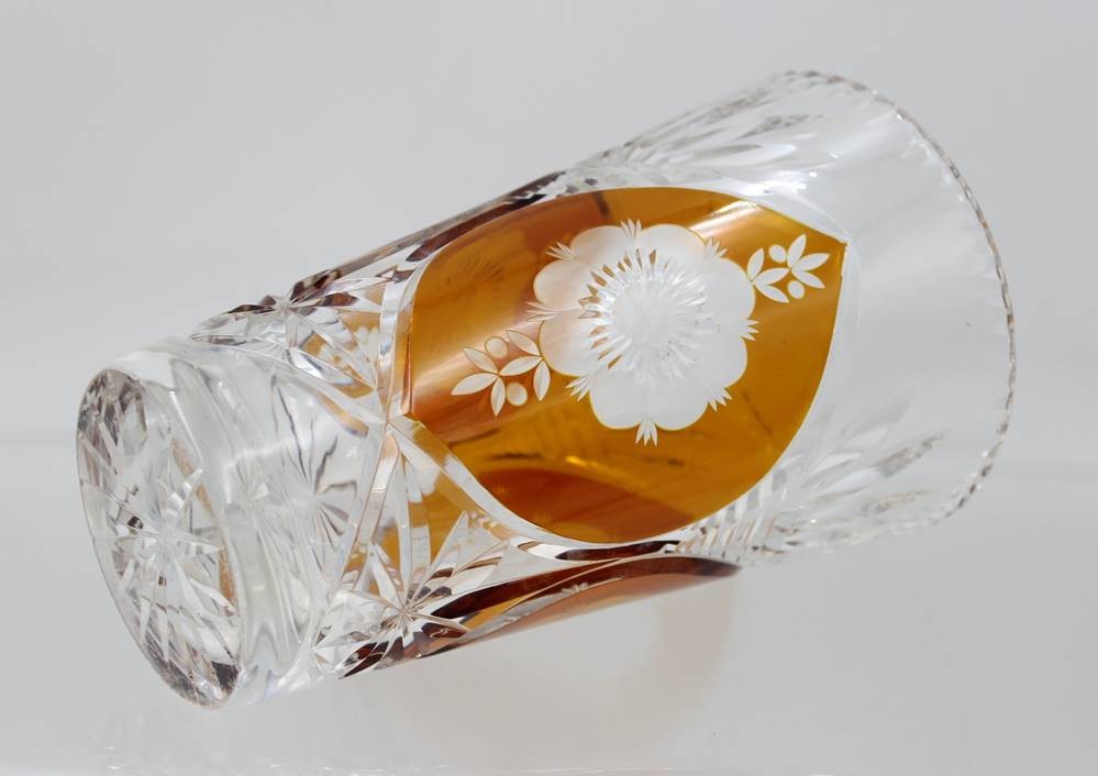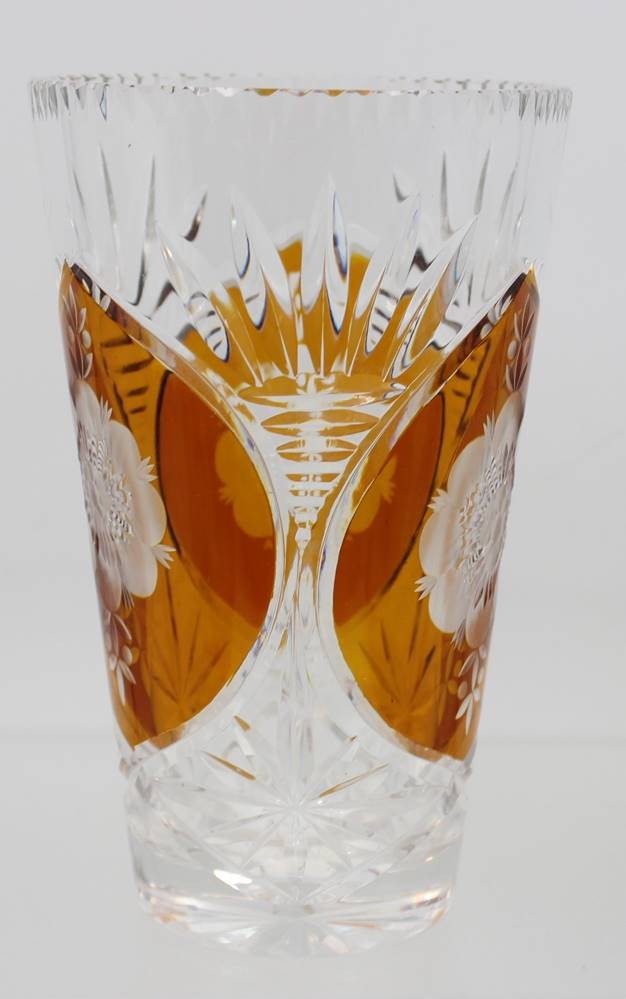 Kristall-Vase, beschliffen, teilw. Überfangen, ca. H-19,5cm [1]