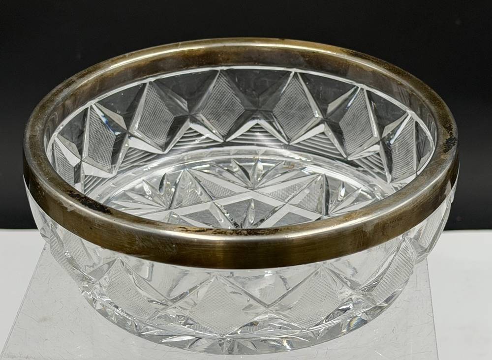 Kristallschale mit versilberten Rand, H-6 cm, D-16 cm [1]