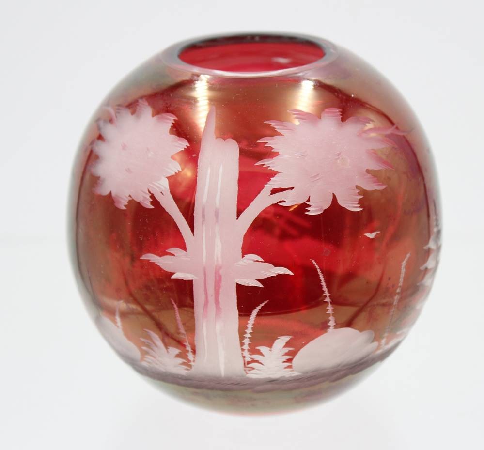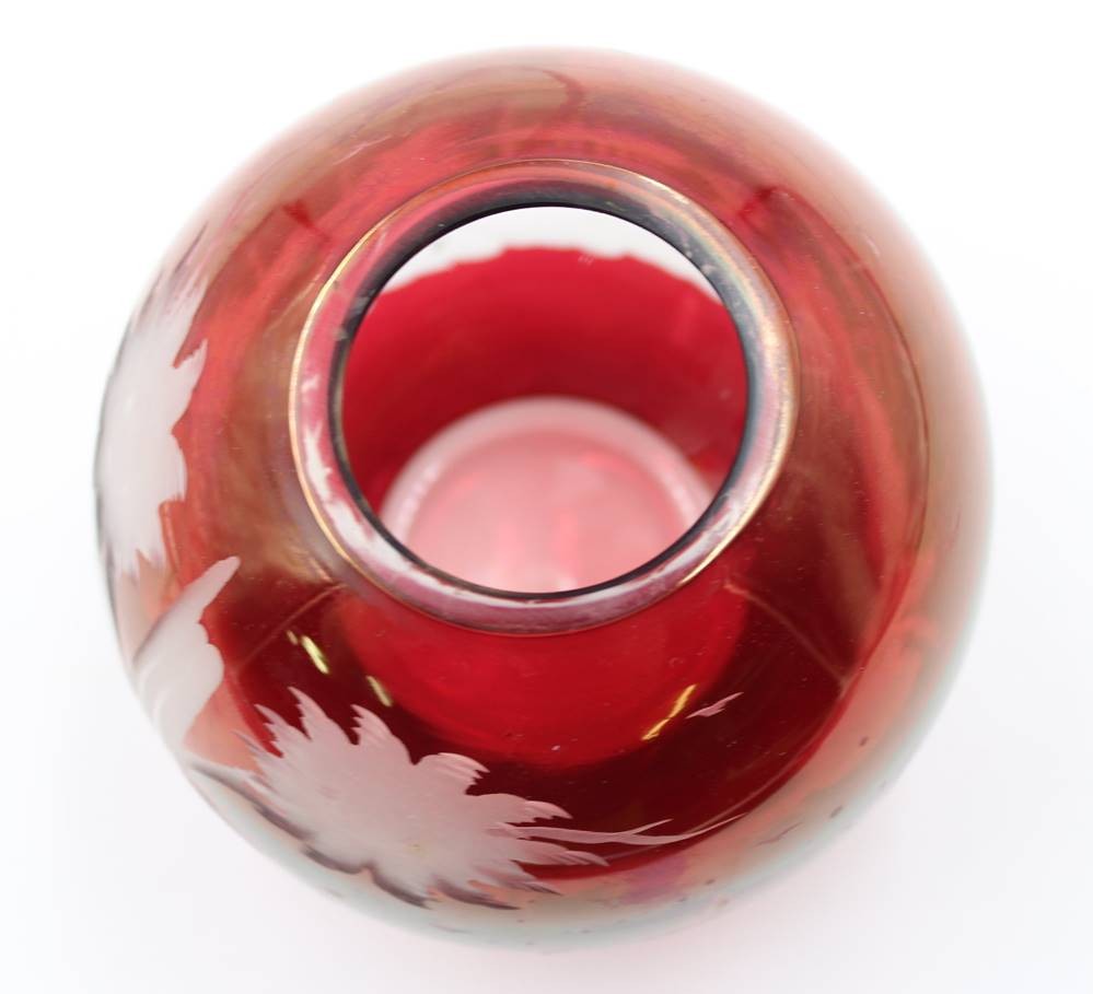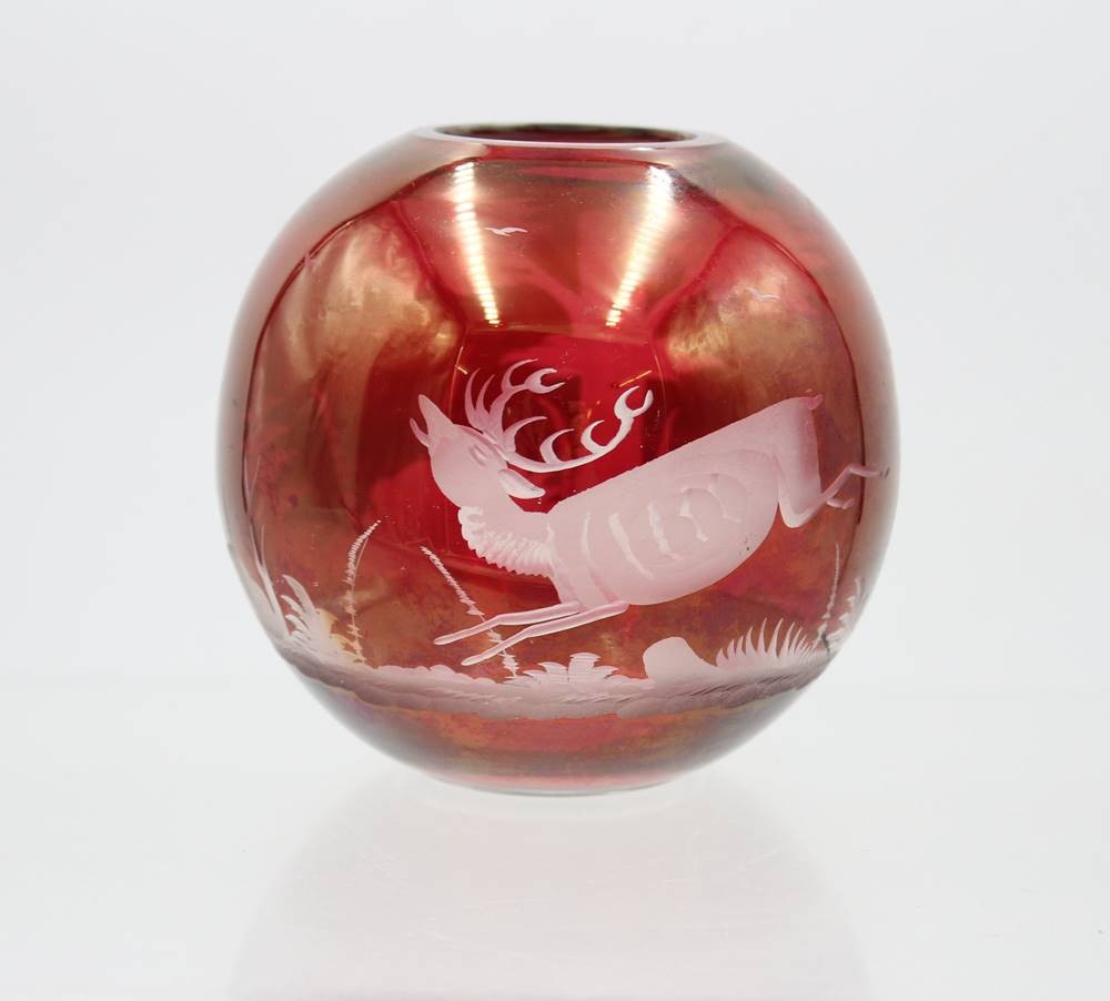 Kugelvase, rot überfangen, Barockschliff, ca. H-10cm