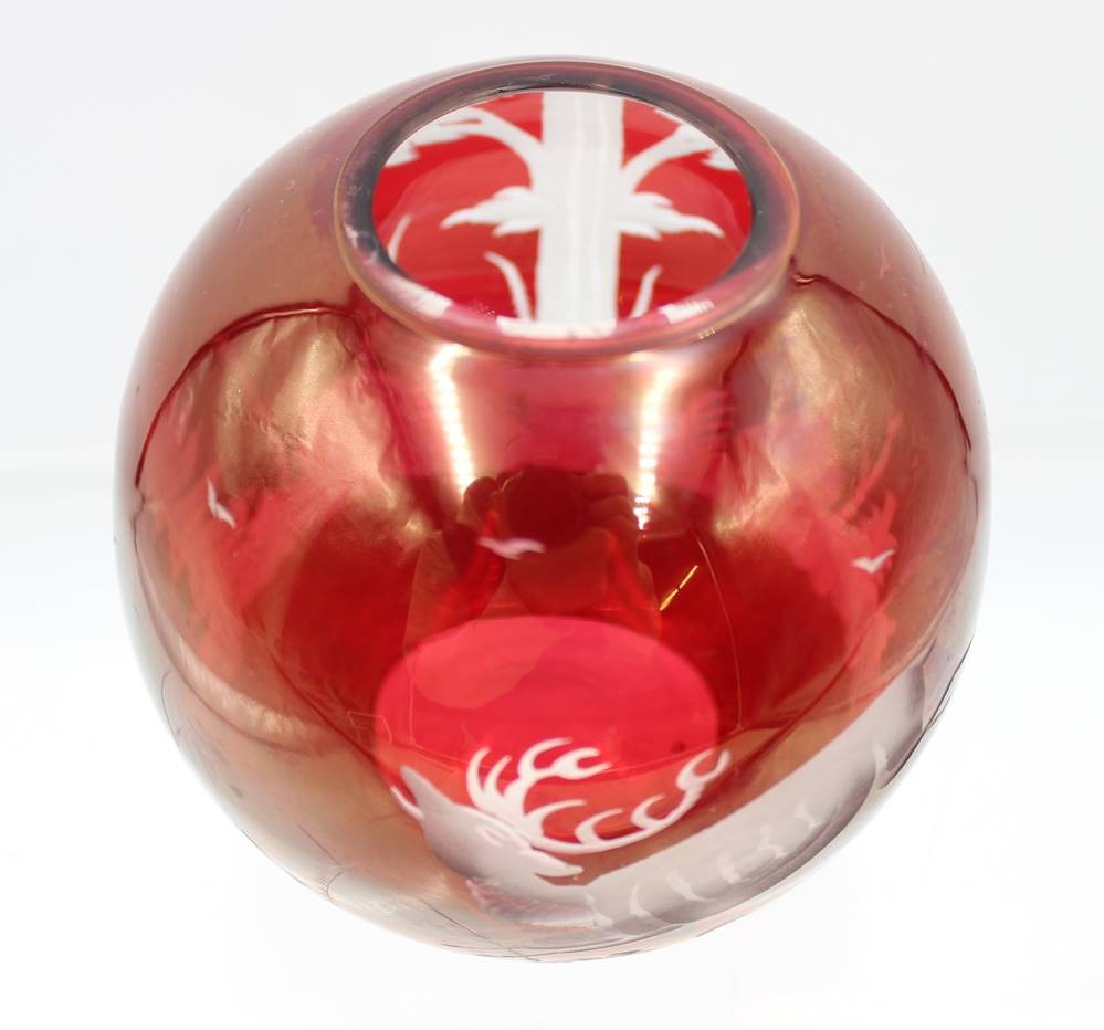 Kugelvase, rot überfangen, Barockschliff, ca. H-10cm [1]