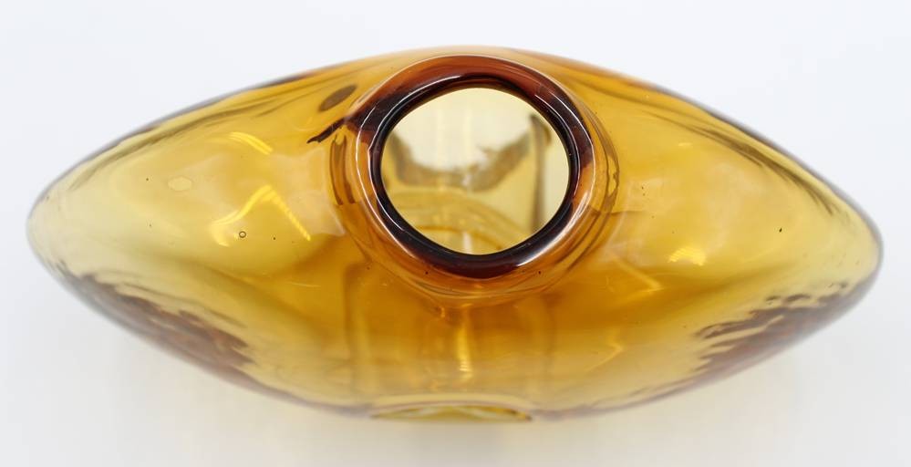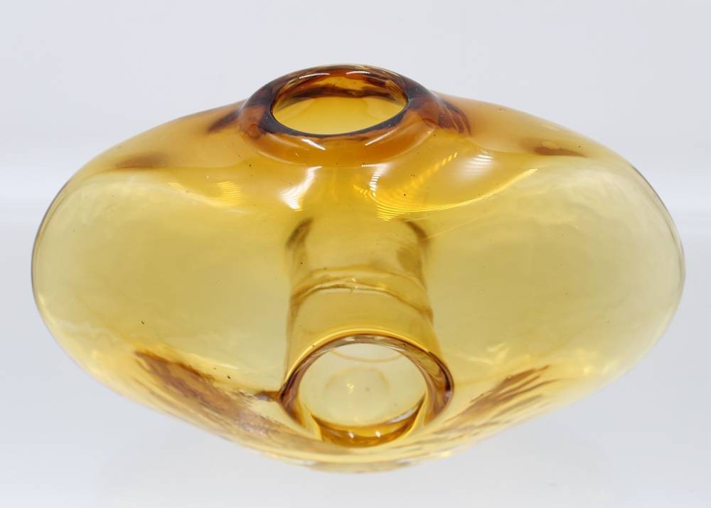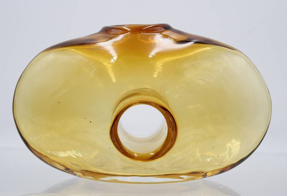Kunsglasvase, 60/70er Jahre, Bernsteinfarben, ca. H-12cm B-19,5cm [1]