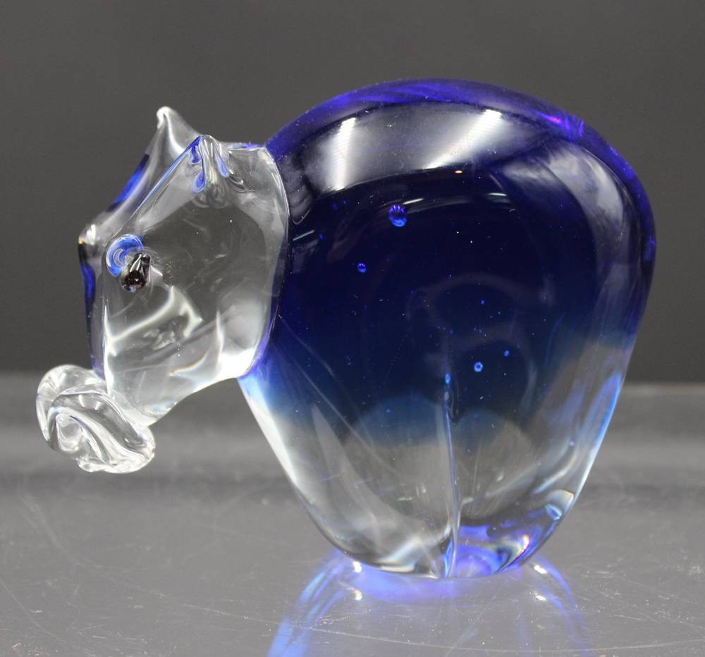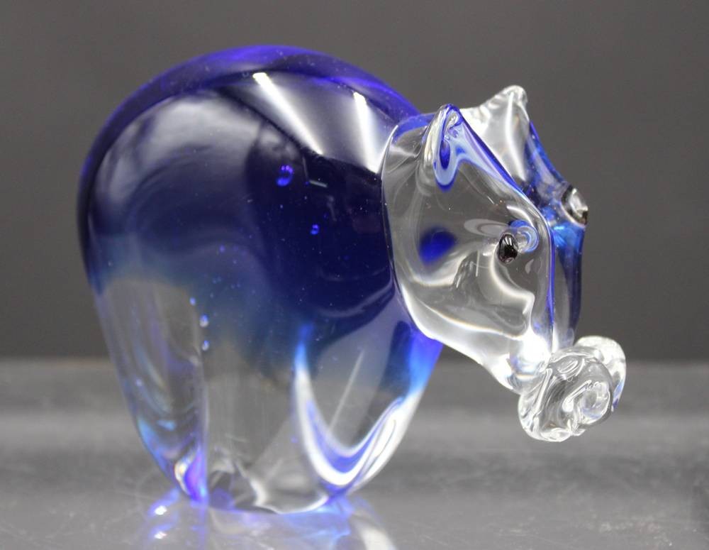 Kunstglas-Tierfigur, wohl Nilpferd?, blau/klar, H-8,5cm