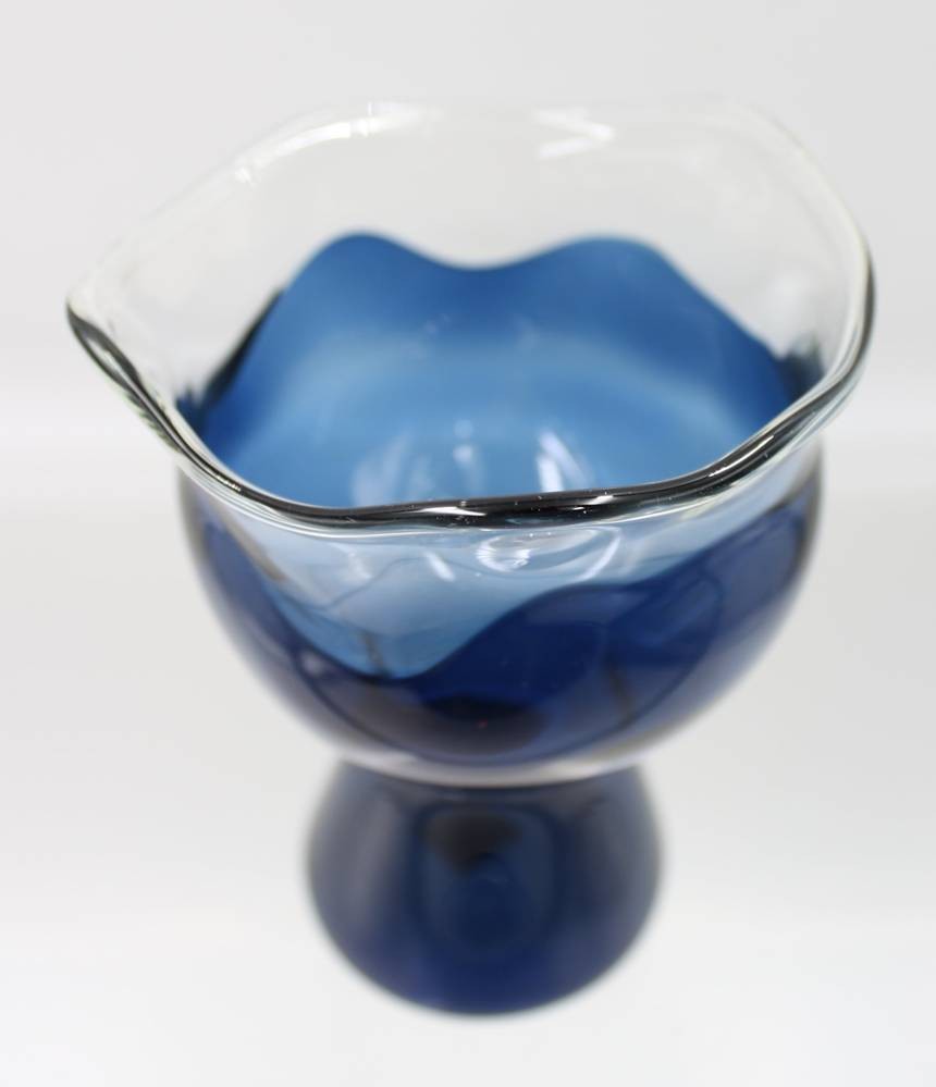 Kunstglas-Vase, blau/klar, sign. H.Traut, H-15 cm [1]