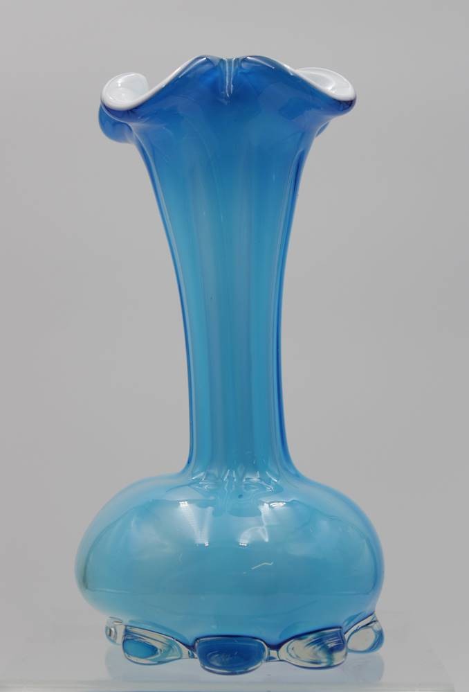 Kunstglas-Vase, blau/weiß, wohl Tschechien, H-21,2cm. [1]
