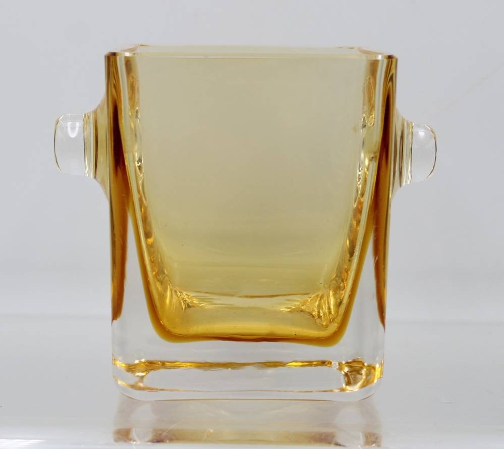Kunstglasvase, beidseitig Aufschmelzungen, ca. H-12,8cm B-10,5cm [1]