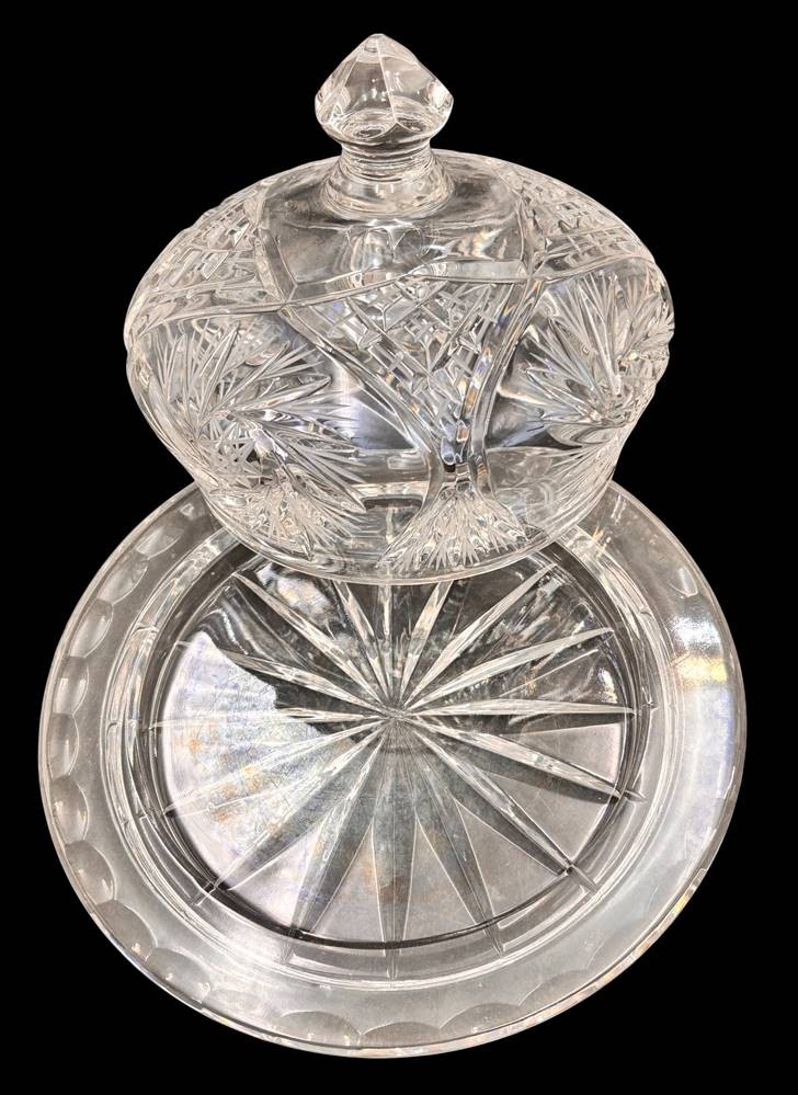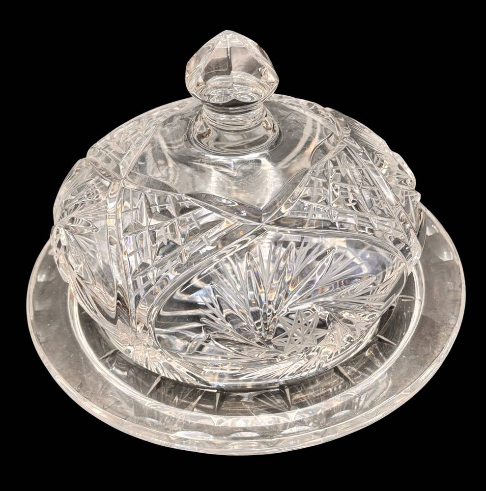 massive Butter-bzw. Käseglocke, Kristall beschliffen, H-12 cm, Teller D-17 cm