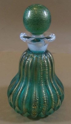 Murano Flacon, grün mit Goldflitter, Etikett "Küster Perry", H-15 cm [1]