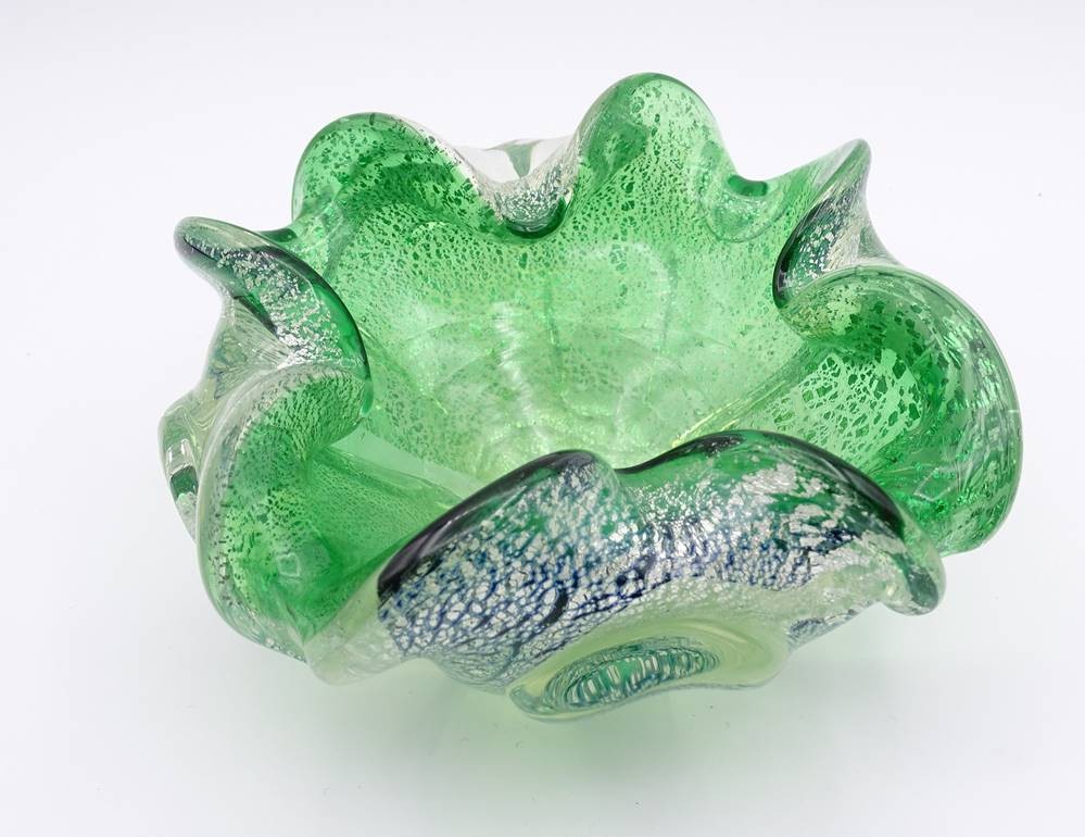 Murano Glas Ascher, grün mit silbernen Einschmelzungen, H. 6,5cm, D. 13,0cm [1]