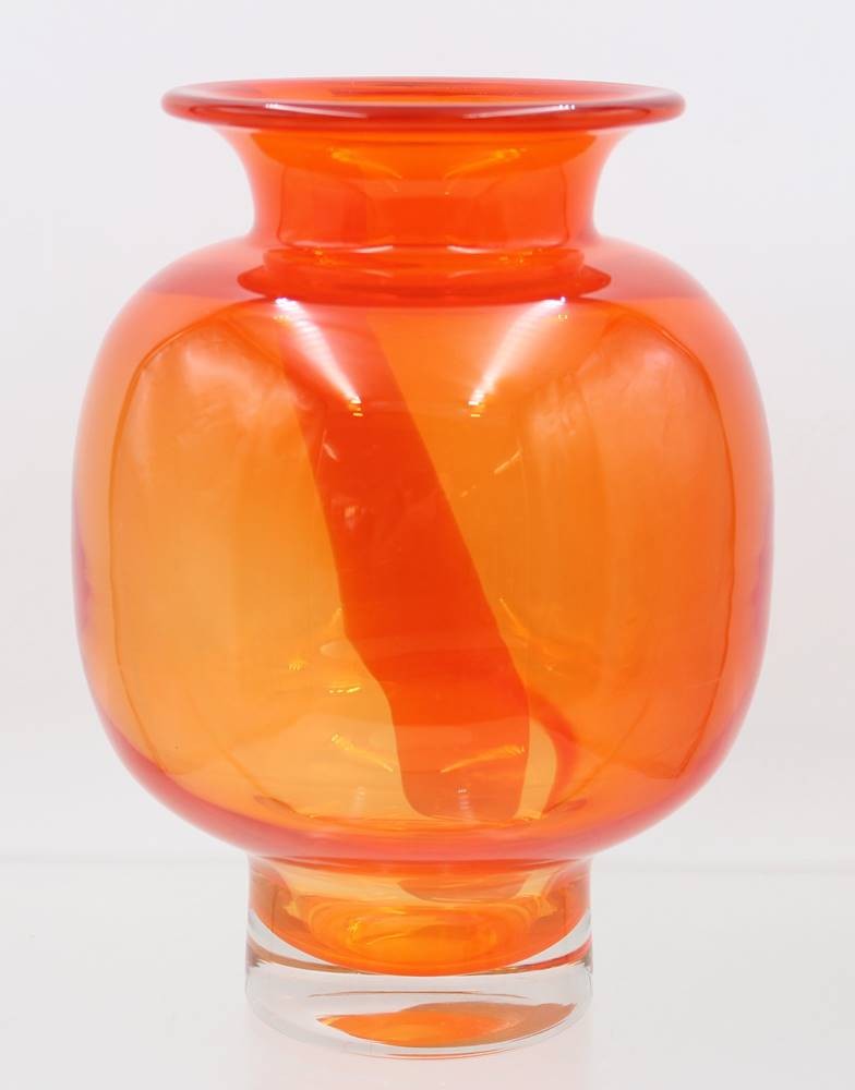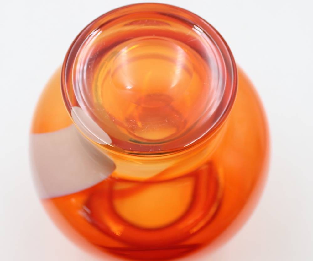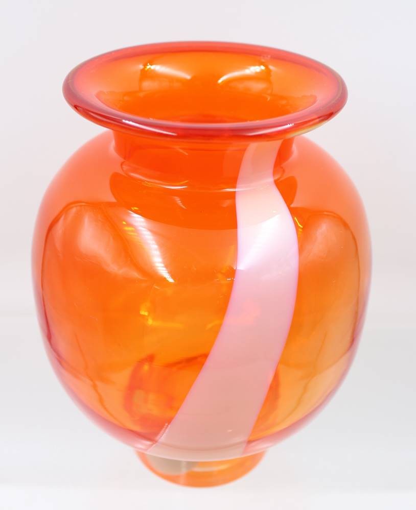 orangefarbene Kunstglasvase, weisse Einschmelzung, ca. H-22cm [1]