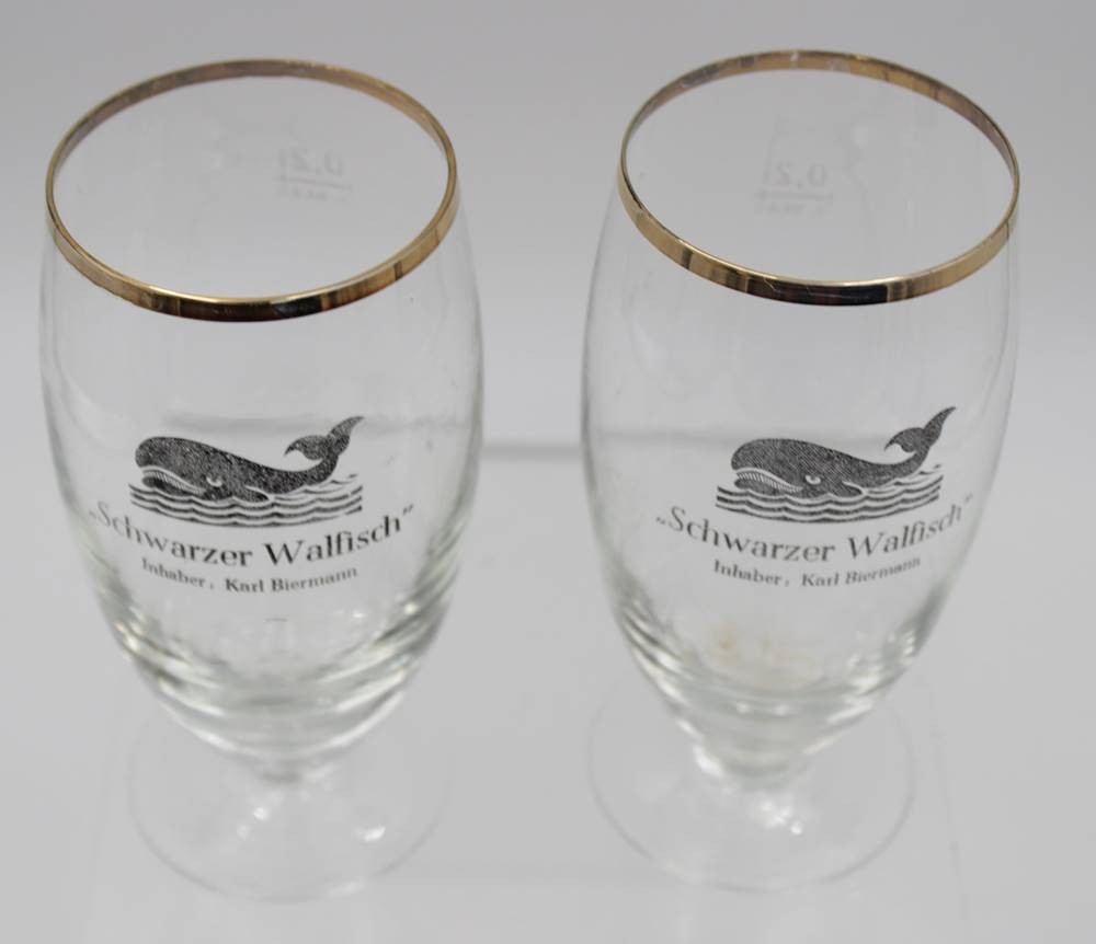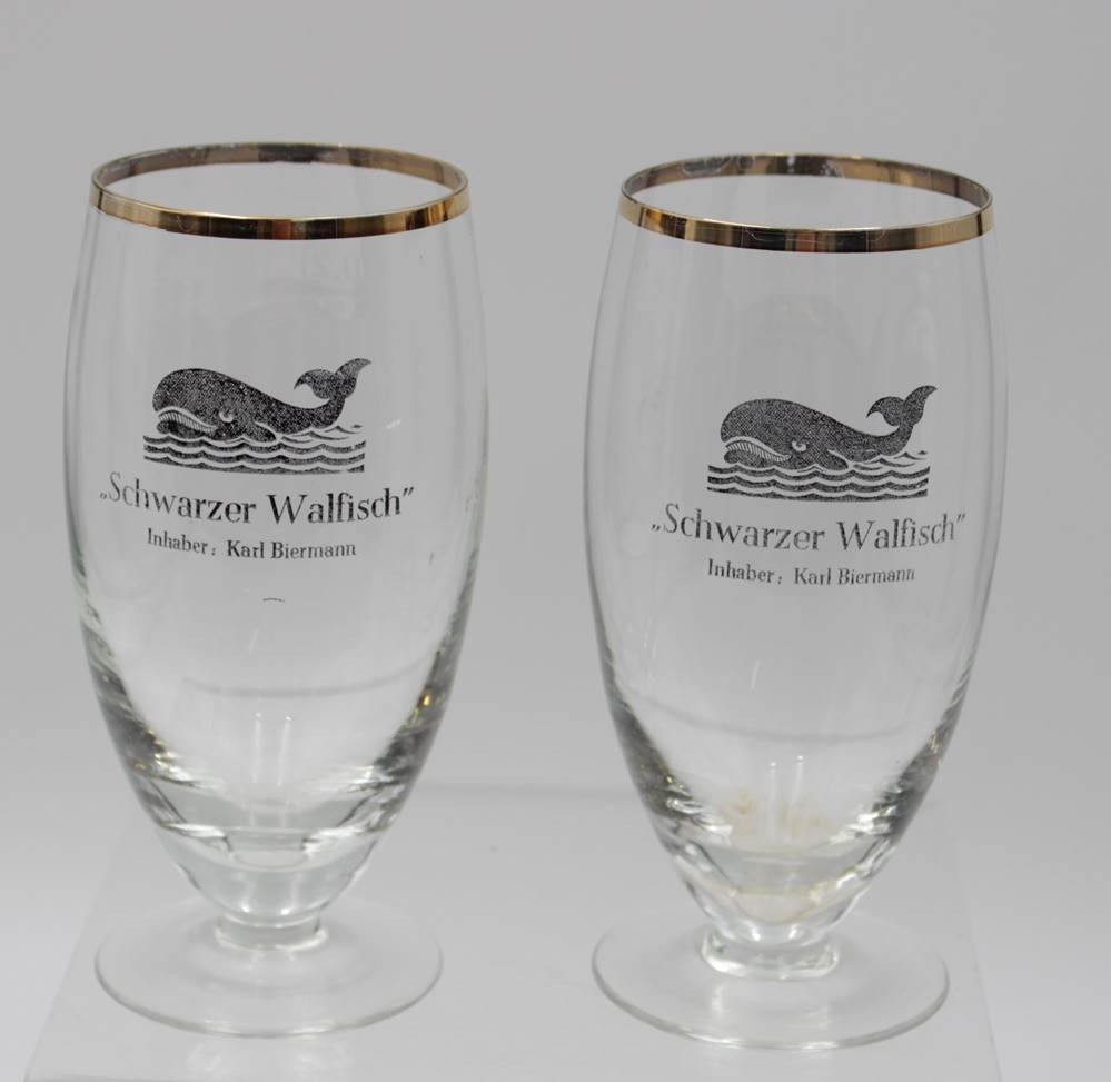Paar Biergläser, "Schwarzer Walfisch" Cuxhaven, ca. H-13cm.