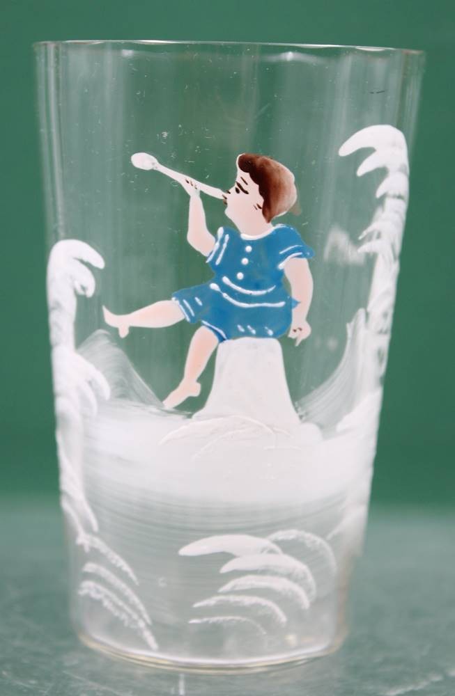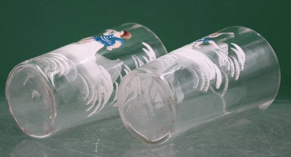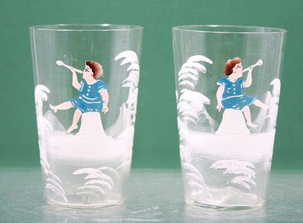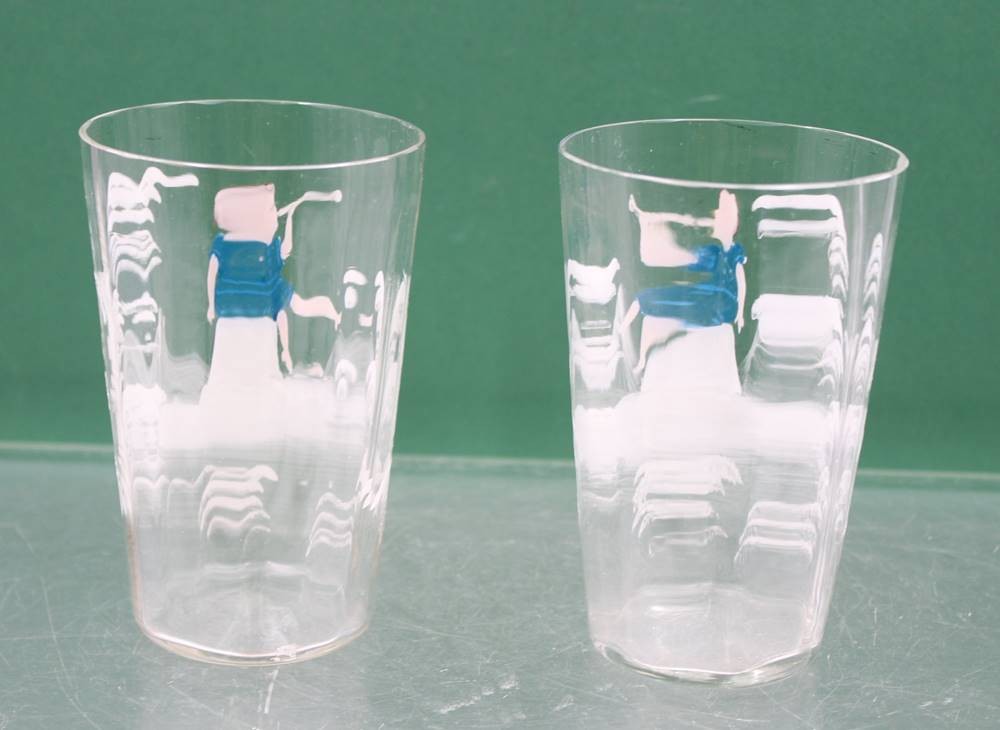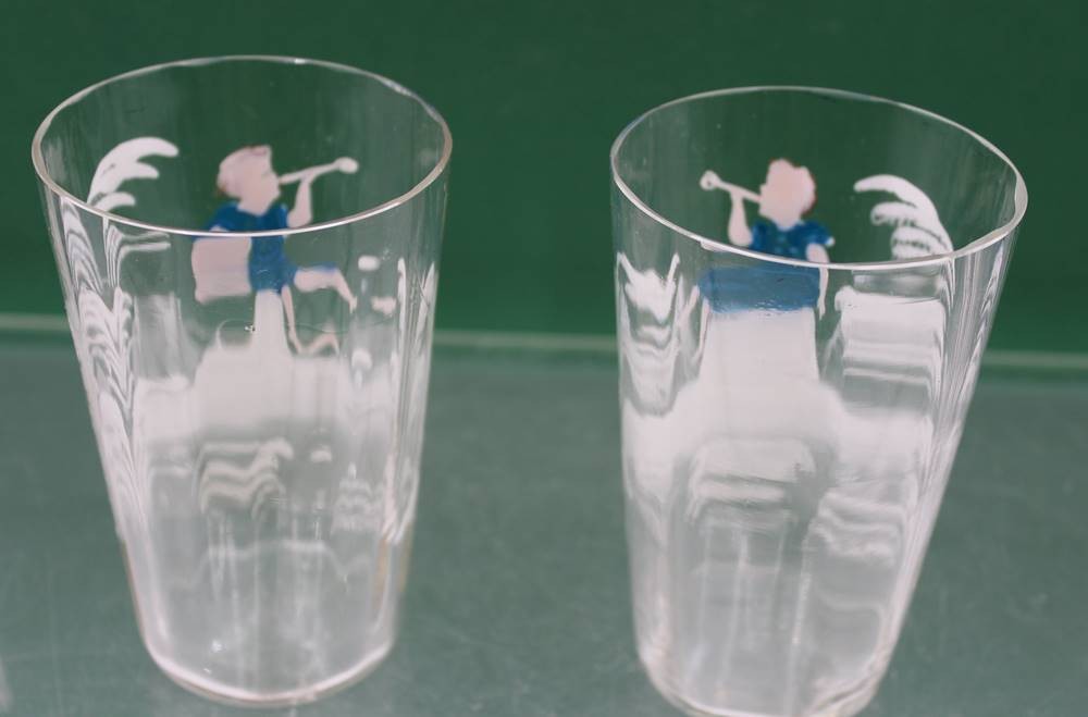 Paar Gläser, Emaillemalerei, musizierende Kinder, älter, je ca. H-11cm [1]