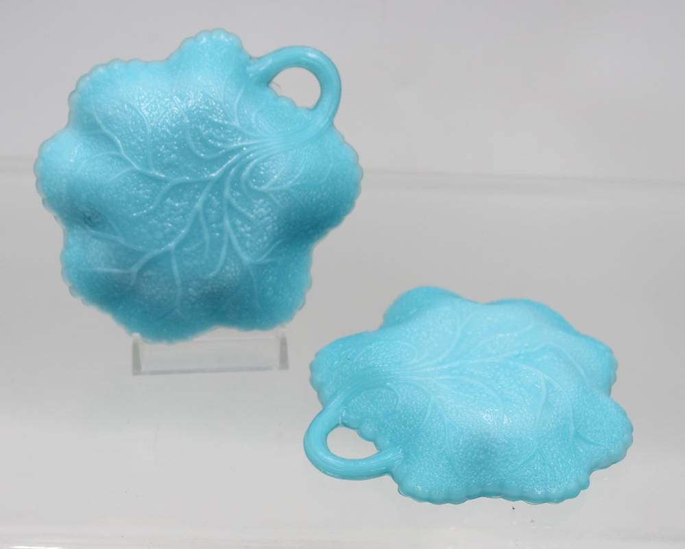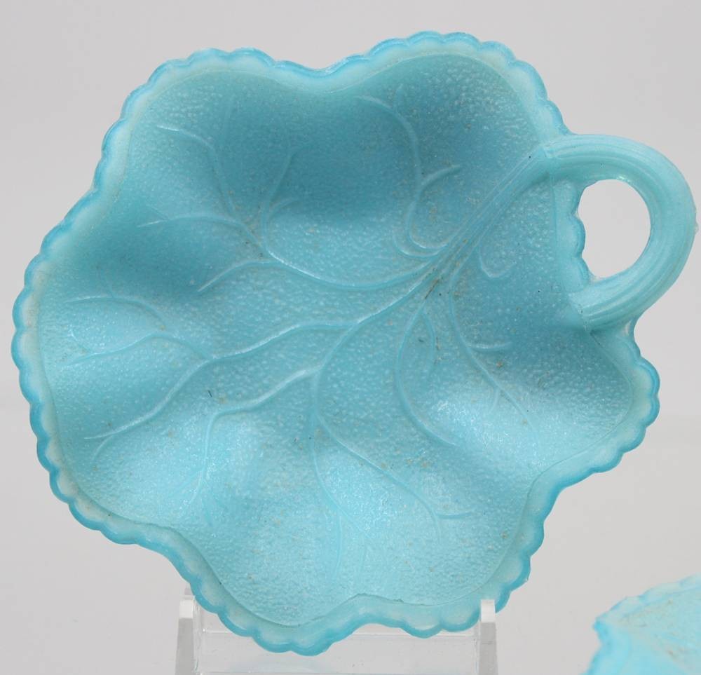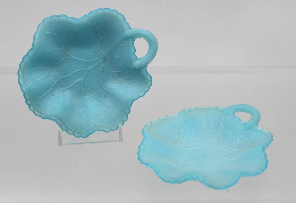Paar kl. Blattschalen, blaues opalines Glas, je ca. 10 x 11cm [1]