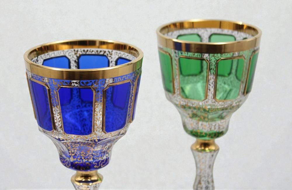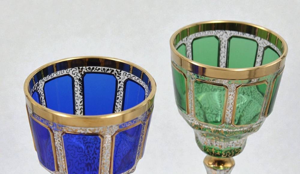 Paar Römer, Serie Venezia, Glasmanufaktur Franz Heide, Böhmisch-Kamnitz, 1920er Jahre Scheibenfuß mit Goldrand, je ca. H-18cm [1]