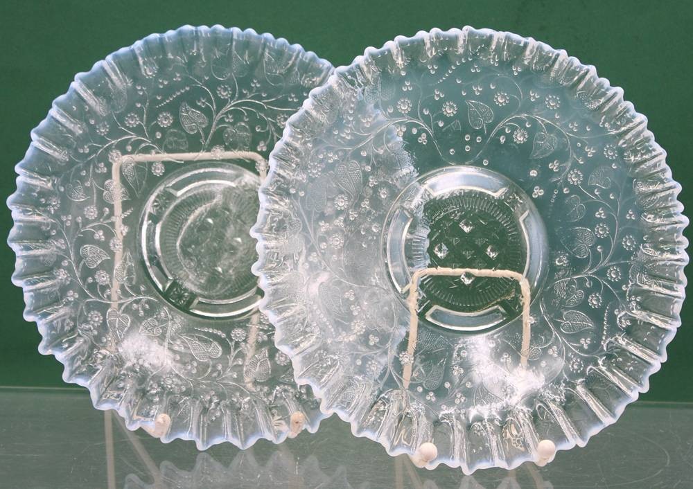 Paar Schalen, älter, Pressglas, gewellter Rand, ca. D-25cm