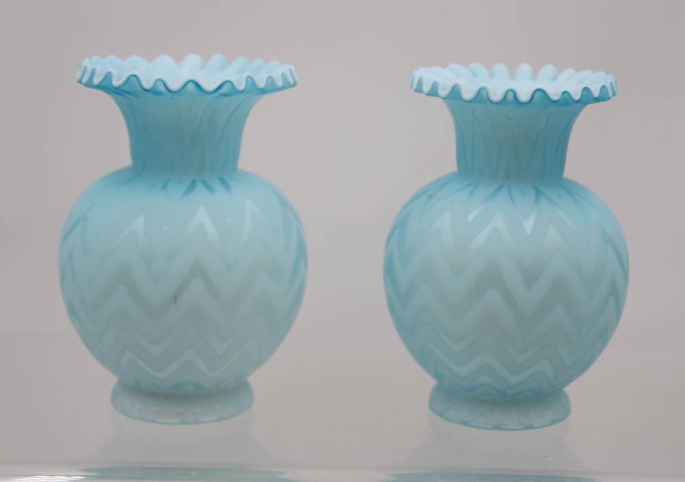 Paar schöne Opal-Glasvasen in blau, älter, je ca. H-14cm [1]