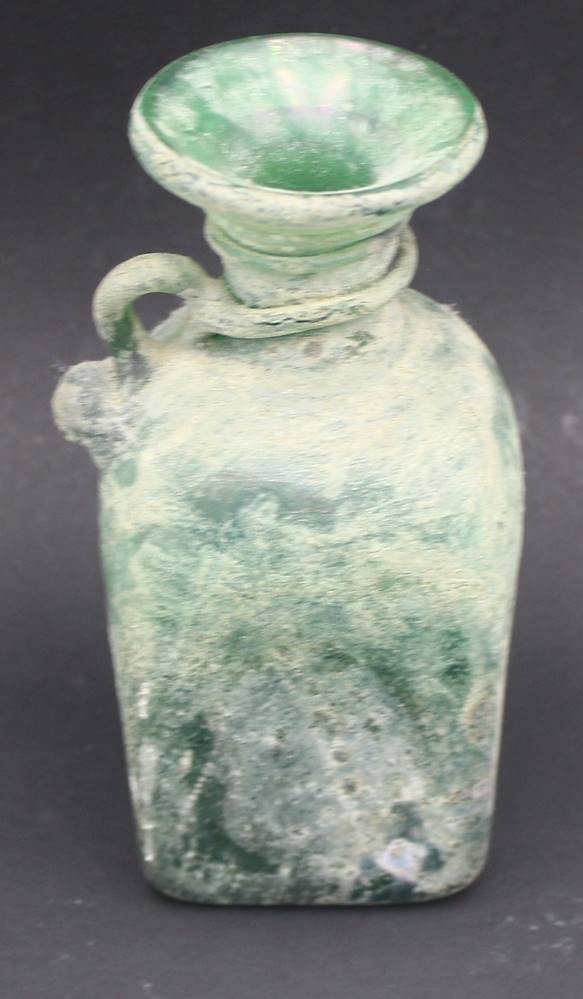 römische Ölflasche, Kopie nach altem Vorbild "Cenedese-Murano", handmade, orig. Etikett, H-16 cm [1]