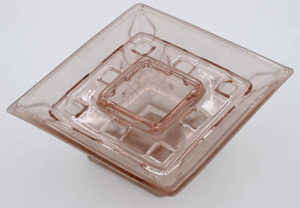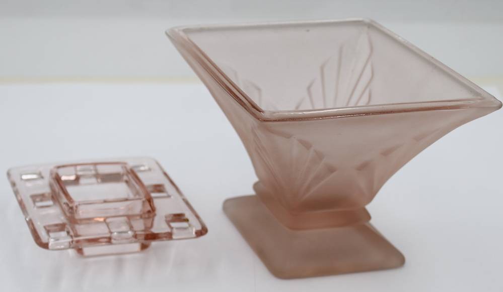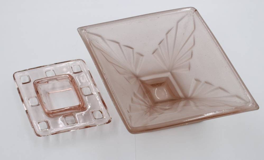 roséfarbene Vase mit Steckeinsatz, wohl Frankreich, Stand mit kl. Chips, H-11,3cm B-19cm [1]