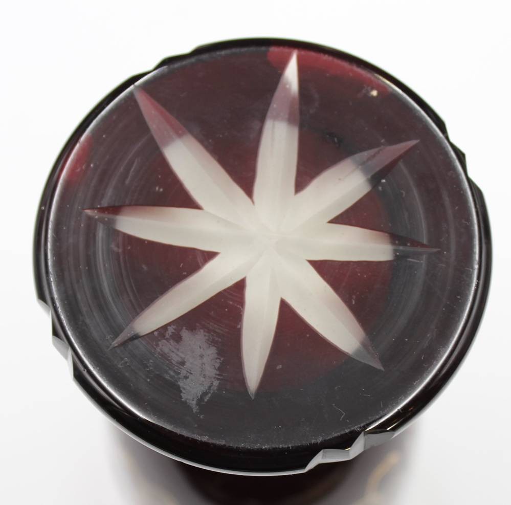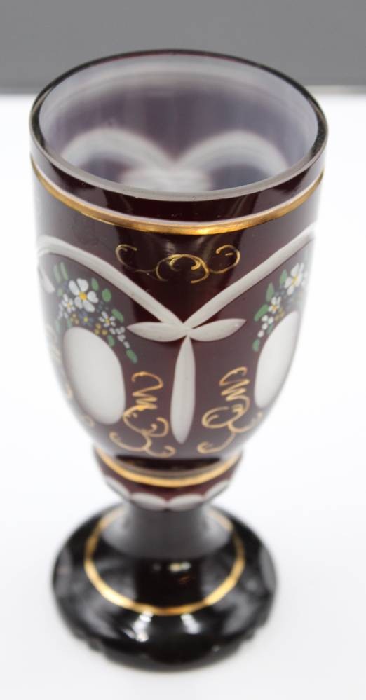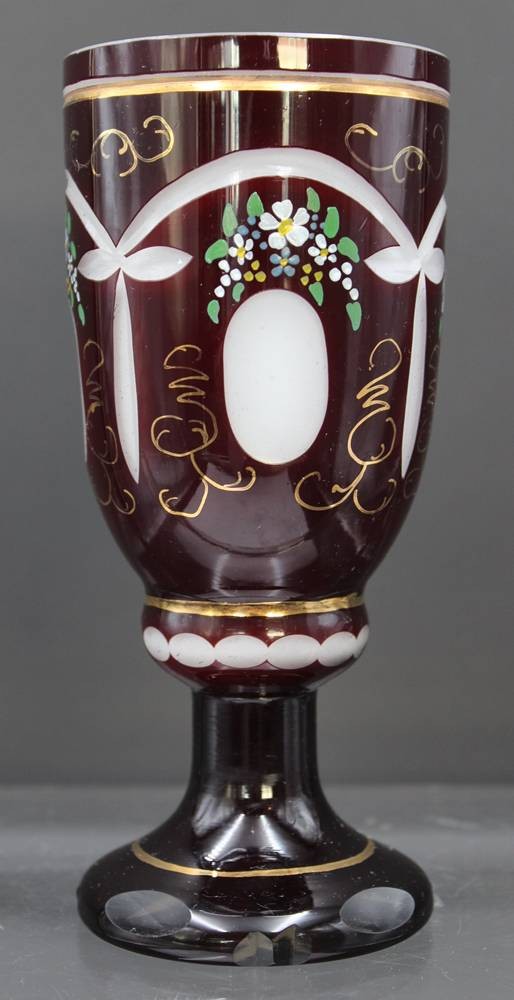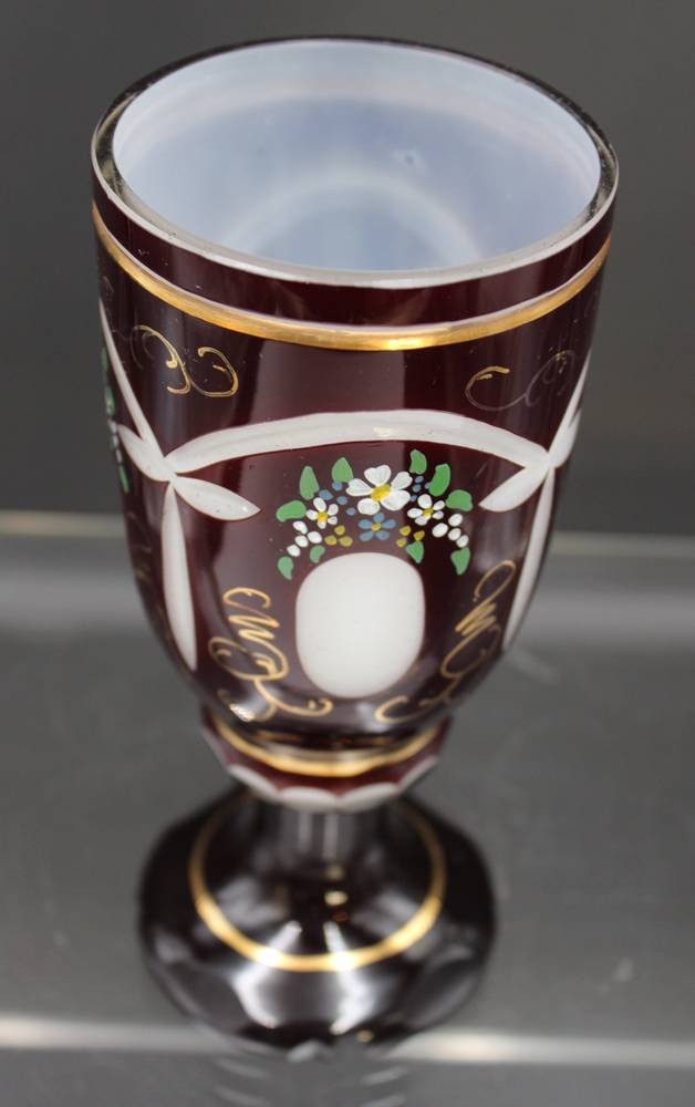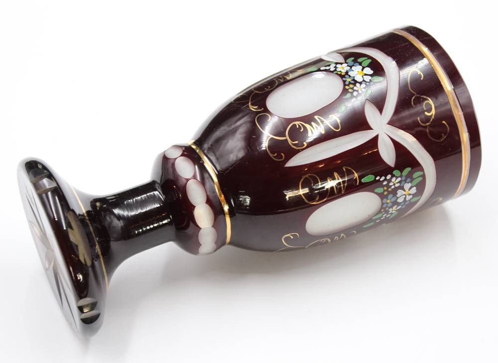 rot überfangenes Opalglas, beschliffen, Emaillemalerei, H-18cm [1]