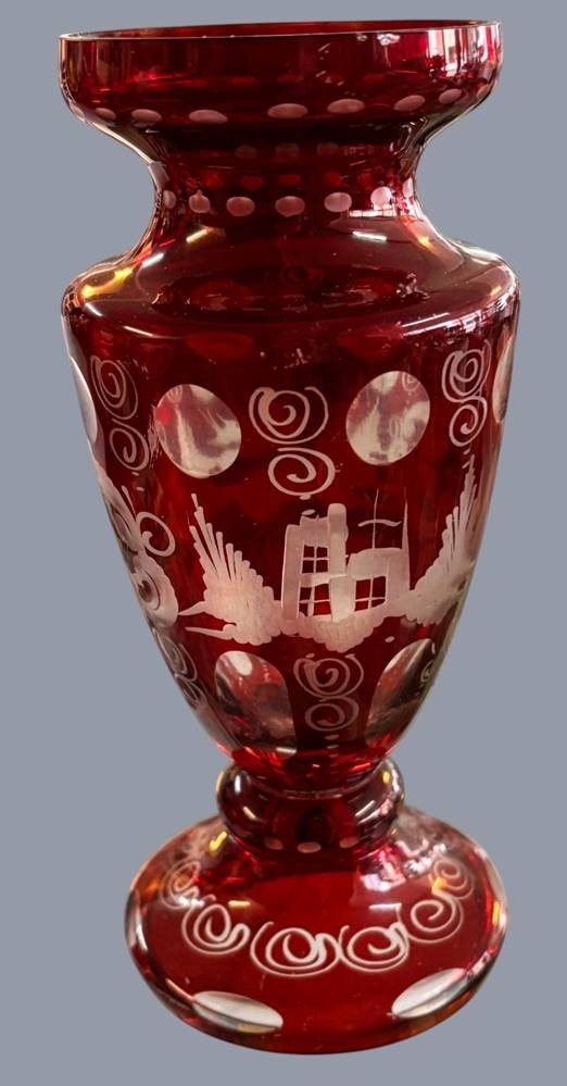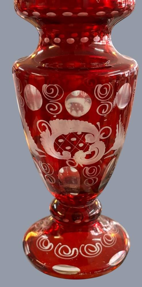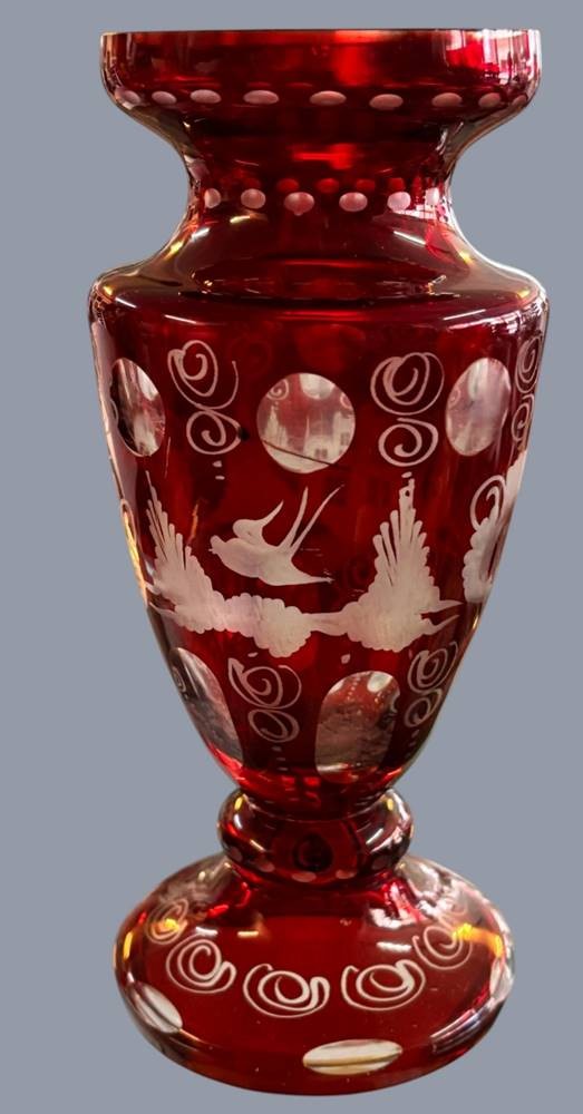 Rubinglas-Vase mit Barockschliff, H-17 cm, Rand mit minim. Abplatzern [1]