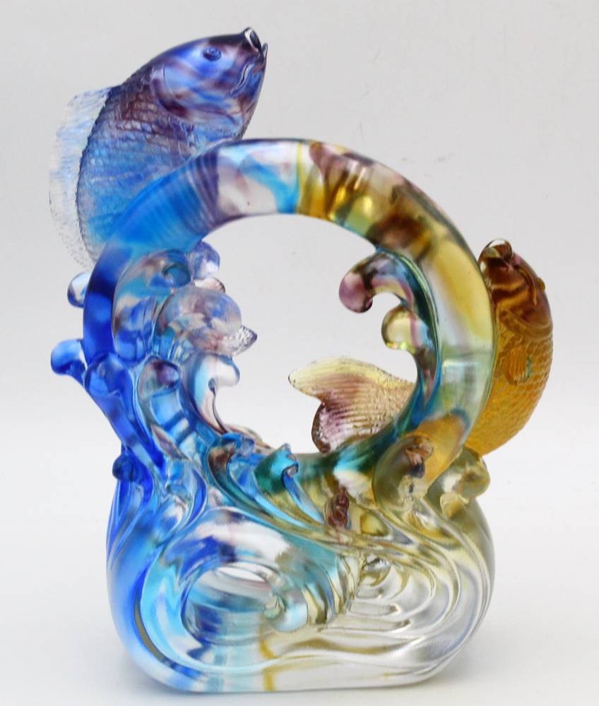 Ruyi Glasobjekt , springende Karpfen, bunt, H-20 cm, V-14 cm [1]