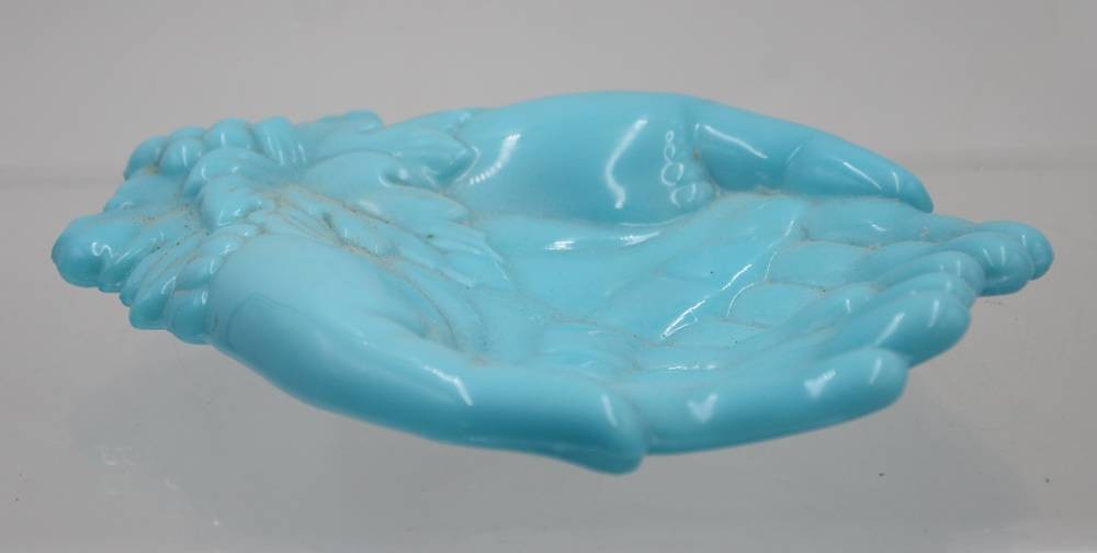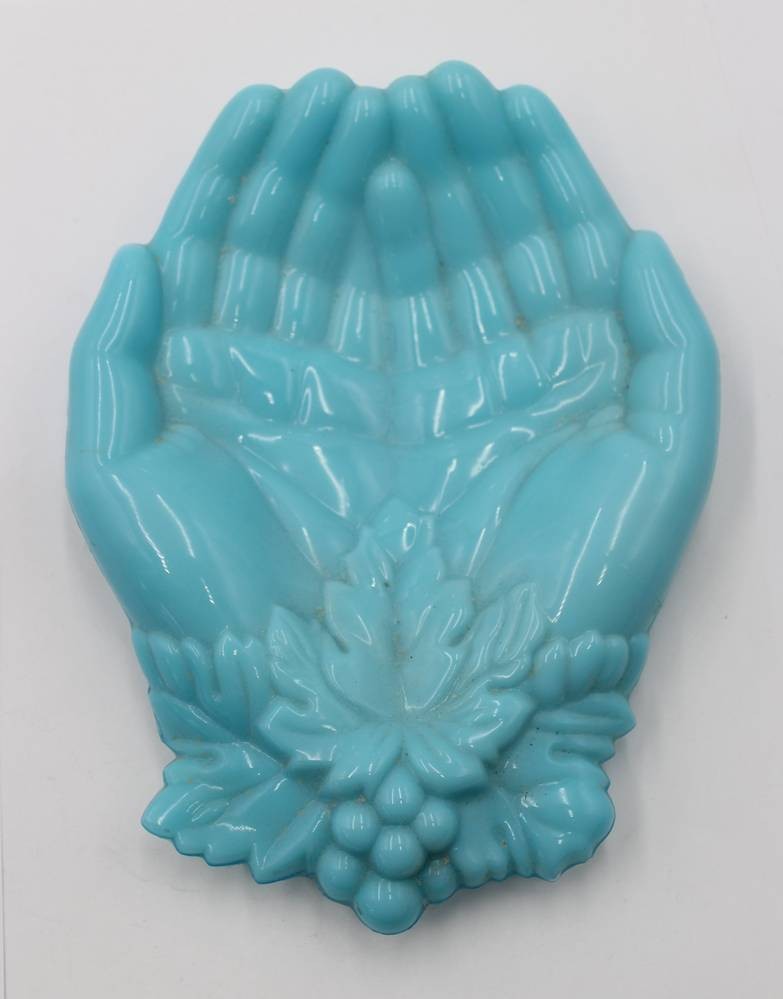 Schale in Form zweie Hände, wohl um 1900, blaues opalines Glas, ca. H-3,5cm 19 x 15cm [1]