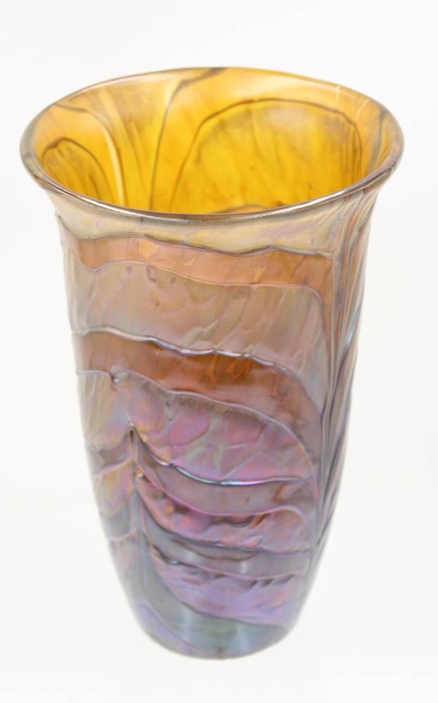 schöne Kunstglasvase, Murano, irisierend, Boden undeutl. signiert, ca. H-22cm [1]