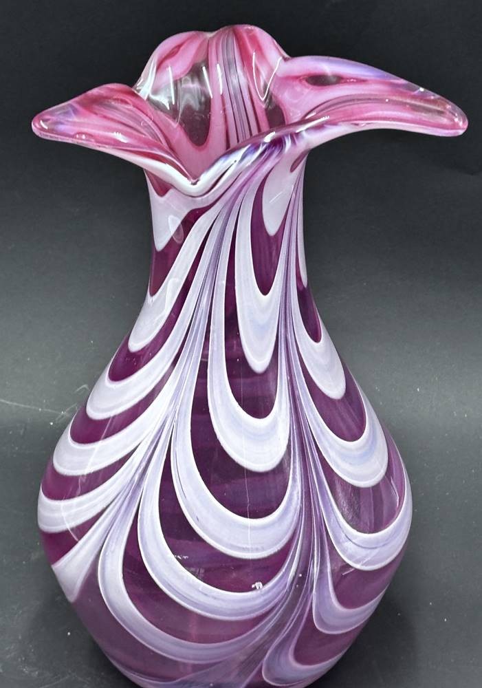 schwere Kunstglasvase, rosa, H-25 cm, D-oben 16 cm, signiert