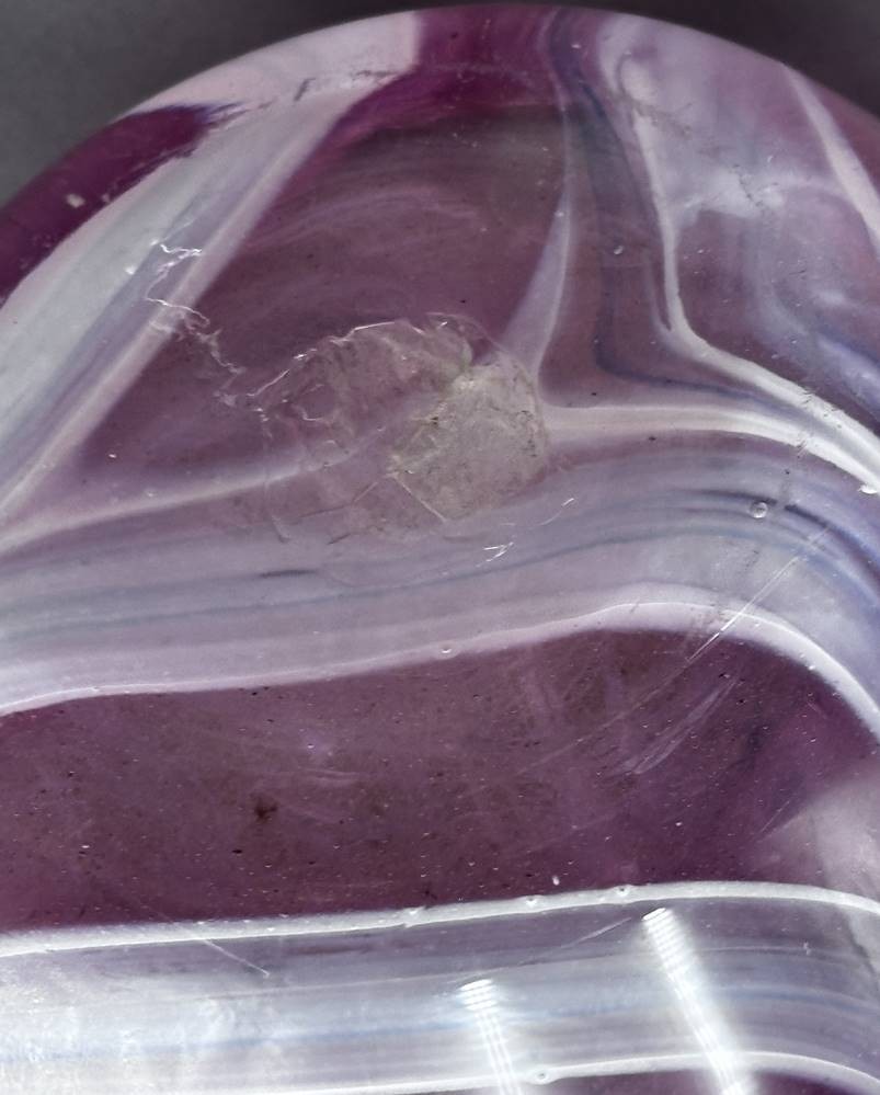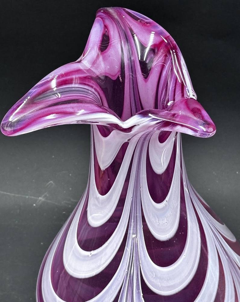 schwere Kunstglasvase, rosa, H-25 cm, D-oben 16 cm, signiert [1]