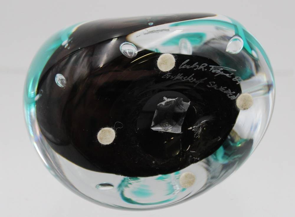 signiertes Paperweight, Schweden, dat. 1987, H-11cm B-10,5cm. [1]