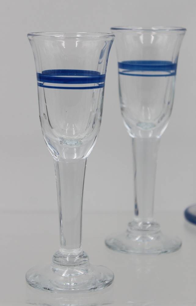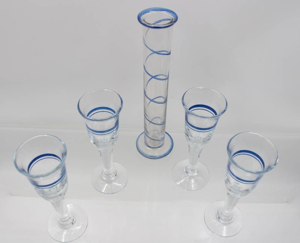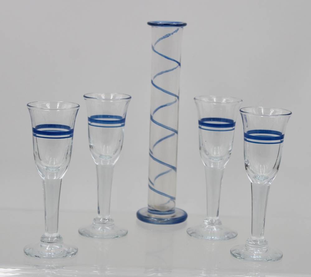 Stielvase sowie 4 Likörgläser diese signiert "HGS", ca. 20,5cm und 13,5cm [1]