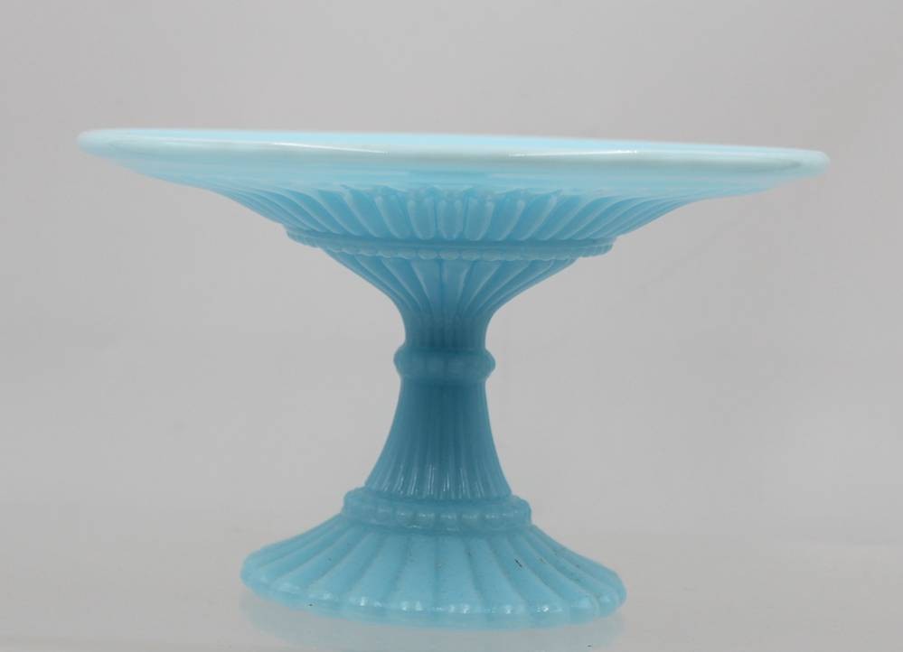 Tafelaufsatz, älter, blaues opalines Glas, H-11cm D-18cm