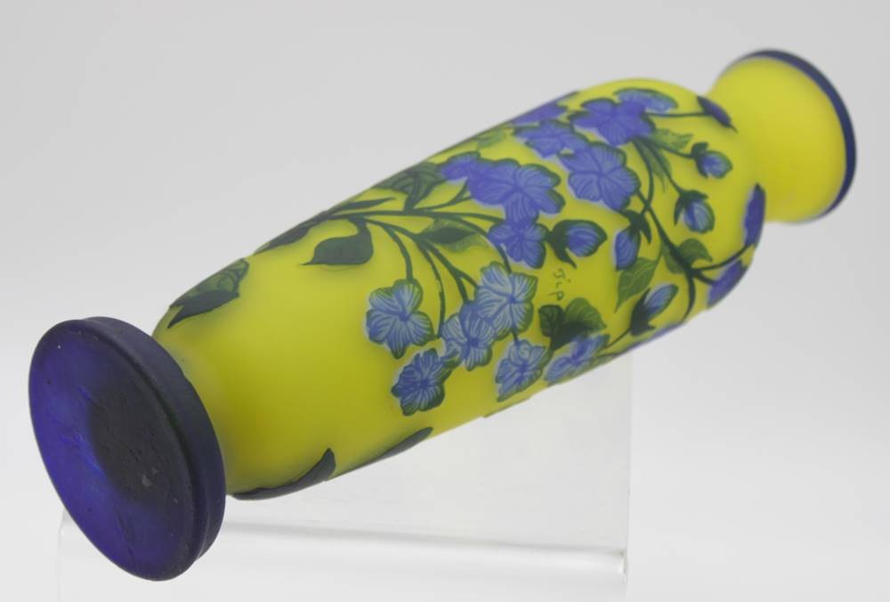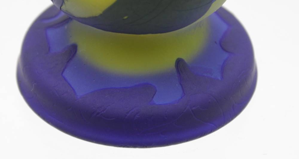 Vase, Tip Gallé, florales Dekor, blau/gelb, H-28cm. [1]