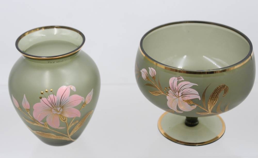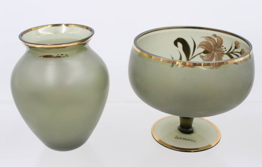 Vase und Fussschale, Formano, florale Bemalungen, ca. H-15 u. 13,5cm [1]