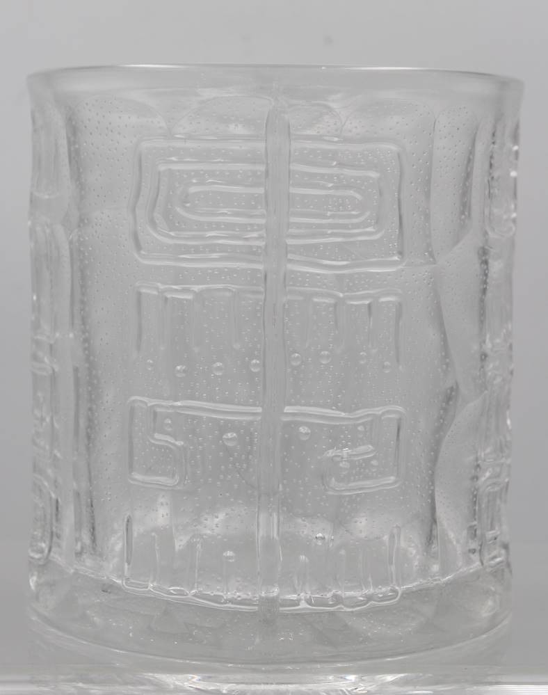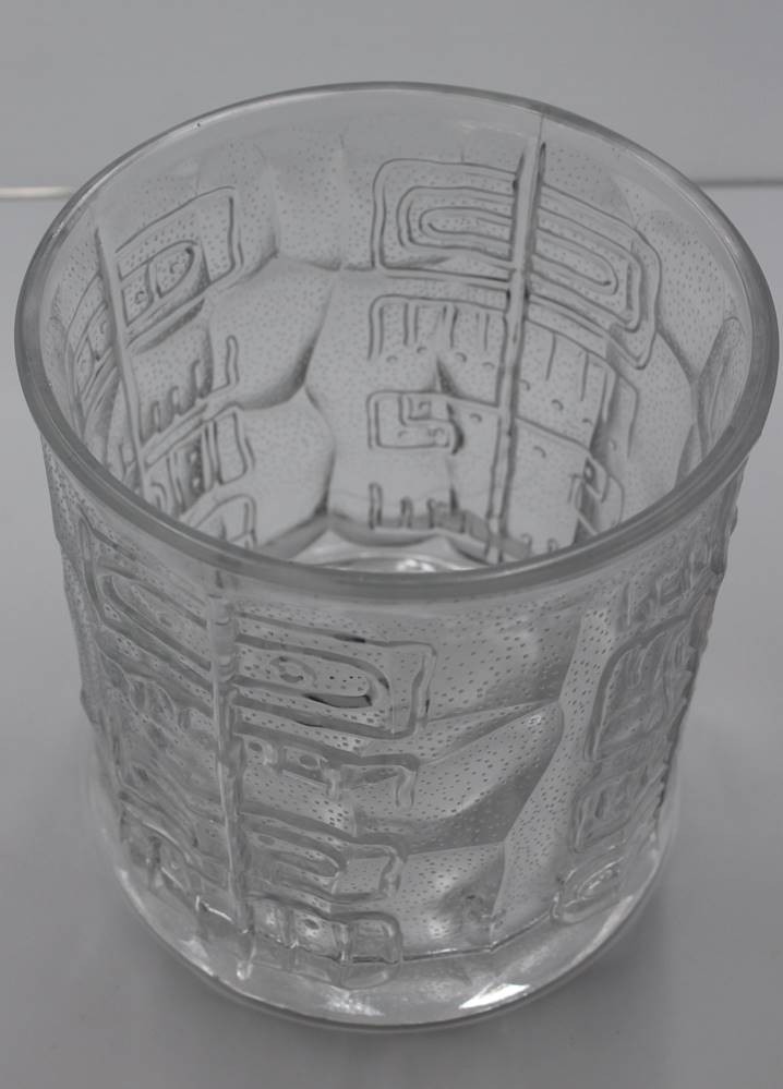 Vintage-Vase, reliefiert mit wohl Südamerikanischen Symbolen, wohl Spiegelau, H-19cm D-18cm [1]