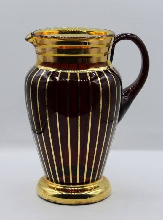 Wasserkrug, Murano ?, rotes Glas mit Goldbemalung, H-21cm. [1]