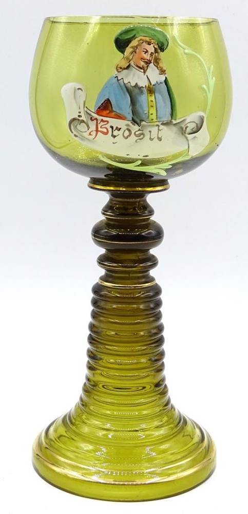 Weinglas,grün,bemalt "Prosit",H-20,5cm, Rand bestossen [1]